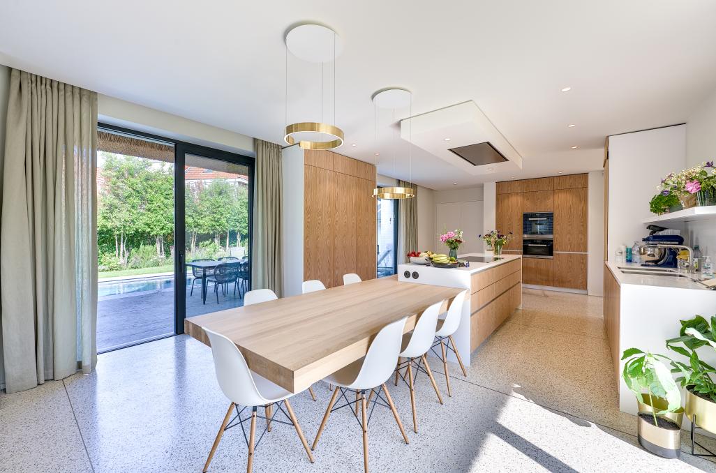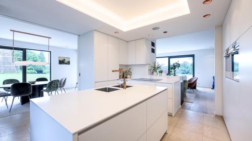 Une cuisine se conçoit comme une pièce à vivre à part entière, souvent ouverte ou facilement cloisonable sur le living. Si son ergonomie et sa fonctionnalité restent à chaque fois un défi incontournable, ces aspects ont pu être dynamisé tant par l'évolution technologique que des nouveaux matériaux. L'ïlot et la hotte forment par exemple une petite architecture en soi. La cuisine épouse la personnalité de son propriétaire et doit reflêter l'esprit de la maison.